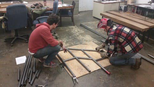 I want to say the reclaimed art tables because they were so beautiful, but it was the railings in front of the Drexel café. Dave called us on a Tuesday afternoon in need of some serious short-term fab: The inspector was coming that Thursday afternoon and without the Certificate of Occupancy, the café would not open the following Monday. We stayed up for almost the entire 40 or so hours from first cut to delivery. It was my favorite because it encompassed all of the tenets of Oat Foundry’s humble beginnings that I love — talented engineers rolling up their sleeves and scrappin’ and hustlin’ to get.it.done.